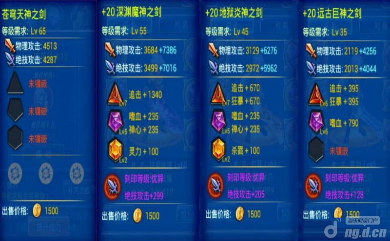 35级、45级、55级、65级金色武器对比: