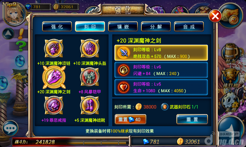 刻印等级分为十等,这其实原来就有分的,只是隐藏没列出来。