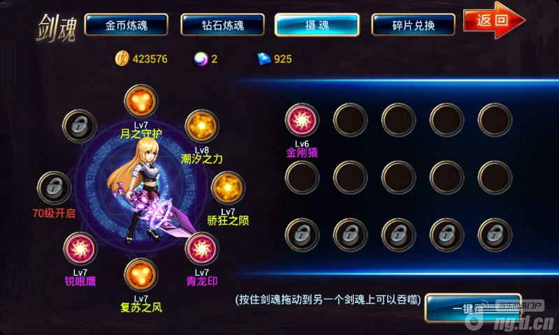 此次更新开启个人PVP、公会战和全服战,更多的时间不再是单机玩BOSS,而是1V1实时PK、可惜没群殴,PK没有针对剑魂怎么行?到70级剑魂搭配一定要合理的,所以我推荐以下剑魂,为什么这样配?我是根据各职业技能特殊性,实用性选择,别的高手可能有自己的想法,自己搭配,根据1000多场1V1实战体验,我相信自己的搭配方法合理。