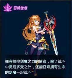 魔剑是召唤使者的神技,刷图快,PK时候压制对手。而且范围广,持续时间长,是一个PVP的能手。打BOSS的最佳选择。远距离操控魔剑攻击是召唤使者的优势。很多人看技能介绍以为与圣光使者的技能一样,其实不是哟。圣光是地下发动光柱,范围广,而且攻击力强的特点。缺点其实也比较明显,召唤使者魔剑攻击是鸡肋,伤害不高但是附加值却比较高,眩晕,所以职业的选择善于使用在1V1的战场上,例如BOSS和PVP。