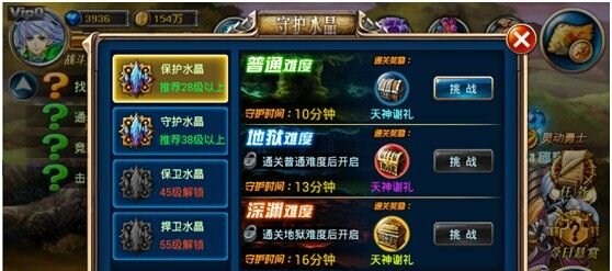 2)守护水晶挑战有次数限制,可补充次数与VIP挂钩