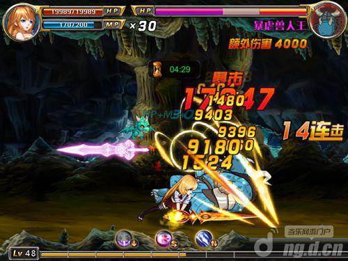 到了45级以后我们将会迎来新的BOSS暴虐兽人王,比起前面的反噬骑士,这个家伙的难度主要集中在超高攻击力的连续技上(虽然反噬骑士也有,但是条件相对苛刻容易识别),防御力不足的情况下被打中一下很可能直接死于非命。不过总体来说,由于射程和范围的先知,暴虐兽人王的难度还是要比反噬骑士低上不少的,只要职业合适就能一点点的磨死。
