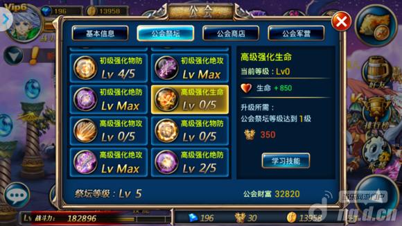 另外公会祭坛全部学满到5级,战力提升最少一万三千多……但想要学满需要11250点贡献值。因为公会祭坛的技能每级需要350点贡献。