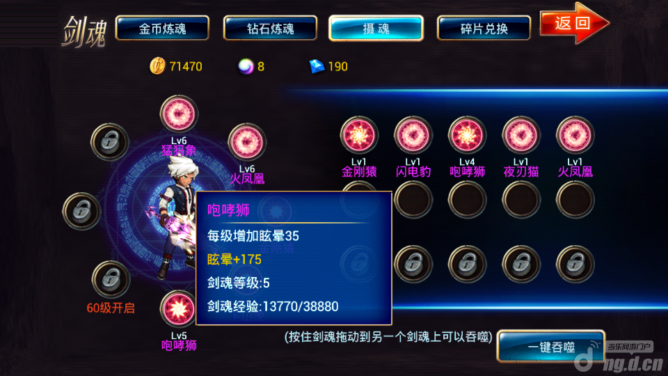 《剑魂之刃》是一款极具探索性的日韩式闯关动作类格斗手游。主打手势操控模式,在战斗连击自由度方面给予加深和创新,并同时融入极其华丽的技能特效,不失为2014年手机动作游戏的盖世佳作。游戏画面采用日韩式卡通风格,整体偏凝重但又不失清新感,尤其是游戏助手形象一改传统“简单”的风格,采用了一只非常可爱的萌系小萝莉,非常符合广大宅男们的胃口。《剑魂之刃》在玩法上不仅拥有包含升级、培养、强化、转职等一系列成长元素,更将即时街机格斗的快感与PK战的激情予以浓墨展现,保证给予你最酣畅淋漓的游戏乐趣与享受。[详情]