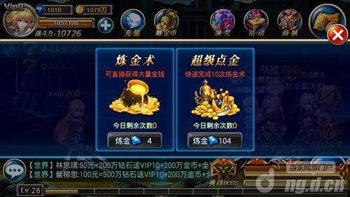 点金是消耗钻石换取金币,如果你没有买600钻石的月卡可以考虑只使用少量钻石的点金,买了的话甚至可以考虑使用一次大量钻石点金。强化装备和合成都会不知不觉消耗大量金币,前期这样的情况可能不会特别明显,越靠近后期你就会发现金币的稀缺越是明显,前期如果不多使用点金,后期将不得不面临诸多力不从心的情况。