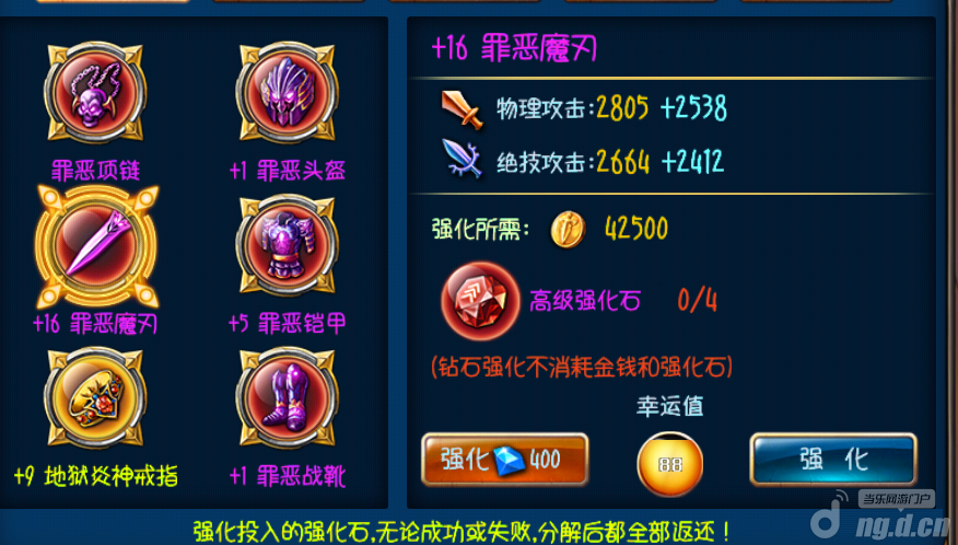 注:这里我之所以不说合成宝石系统,原因很显然,土豪的系统不适合玩家。我坦白说V6以下的宝石效果真的很废,而且合成起来的难度真的挺大,平民玩家就靠慢慢刷混沌之塔合成和升级吧。而且宝石加的虚战会让很家误以为自己很强大,忽略真正重要性的:绝攻、物攻和其他属性。