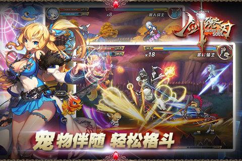 《剑魂之刃》是一款极具探索性的日韩式闯关动作类格斗手游。主打手势操控模式,在战斗连击自由度方面给予加深和创新,并同时融入极其华丽的技能特效,不失为2014年手机动作游戏的盖世佳作。游戏画面采用日韩式卡通风格,整体偏凝重但又不失清新感,尤其是游戏助手形象一改传统“简单”的风格,采用了一只非常可爱的萌系小萝莉,非常符合广大宅男们的胃口。《剑魂之刃》在玩法上不仅拥有包含升级、培养、强化、转职等一系列成长元素,更将即时街机格斗的快感与PK战的激情予以浓墨展现,保证给予你最酣畅淋漓的游戏乐趣与享受。[详情]