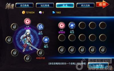 ③剑魂,这个我比较强烈的推荐,没到四十级的话前三个剑魂绝防、绝攻、生命,不用放物攻、物防、暴击啥的。保证输出的同时还能保命,最好搭配了。当然能紫魂的,最好放紫魂(可以钻石抽,必出一紫),实在没有
