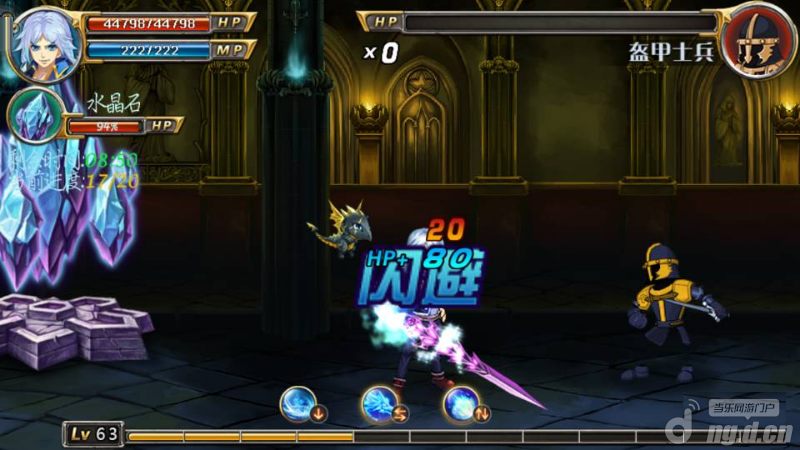 又是骑士,攻击防御都高,15万战斗力还不怎么好过,攻防稍差点都过不了,打这个可以站边缘吸引它的头方向,不断的攻击它,它放技能再跑他后面,放完又是继续跑回边缘攻击它,方法就是控制BOSS的头不要向着水晶,不然水晶两下给它搞没了。