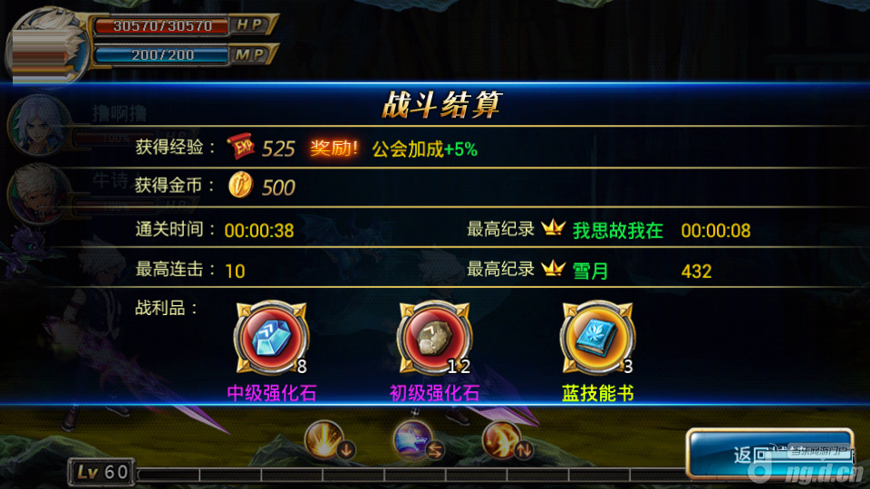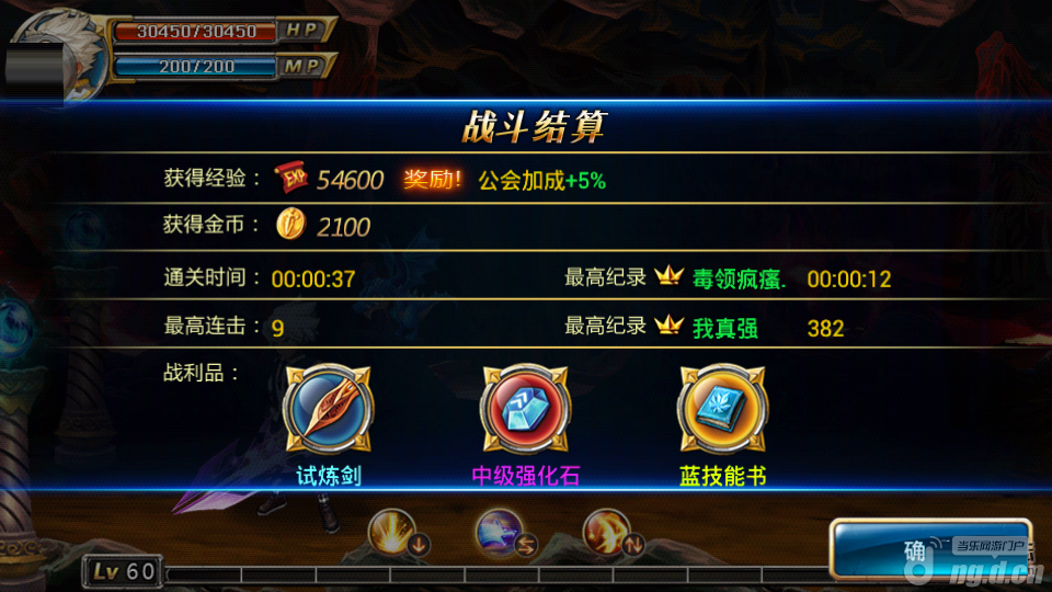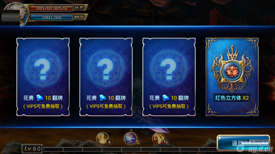 人品帝告诉我,过关奖励,一件装备+一个中强石+一本蓝书=5*6(一个装备分解得6个初强石)+18+10=58钻