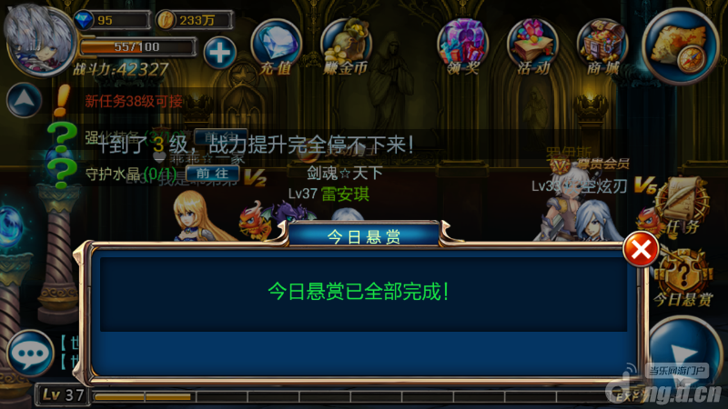 特别提醒下,我觉得这游戏的公会系统挺重要,这个贡献值真的对实际战斗力提升很重要,建议大家多贡献贡献值,全部完成每天的悬赏任务可以免费获得八十工会贡献。