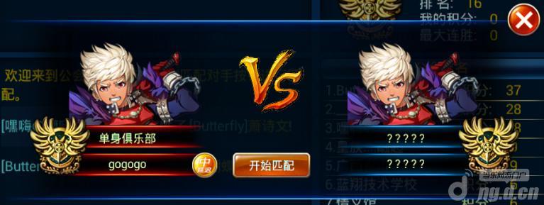 点击“匹配对手”按钮后,伙伴们就会进入匹配界面啦,在出现匹配初始界面之后点击“开始匹配”按钮,系统会为玩家随机匹配以为也正在进行公会争霸赛的玩家哦。