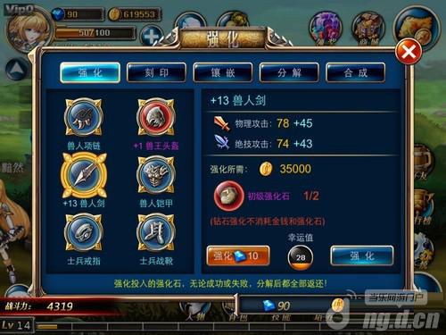 是提升战力必不可少的重要组成部分。下图中我们可以看到,强化装备需要金币,强化石以及...人品。幸运值系统的引进真心想让人大呼坑爹,运气好一次强化就能成功,而若是运气不好,那你只能眼睁睁的看着你的强化石被用来填补幸运值,直到幸运值满才能强化成功。