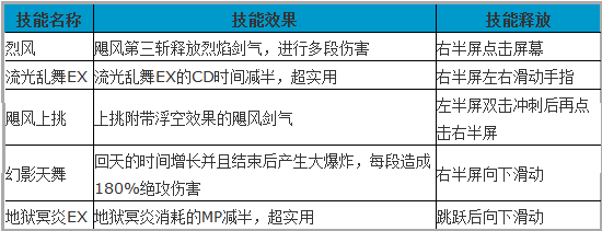 疾刃职业详细技能效果和技能释放操作如下表格: