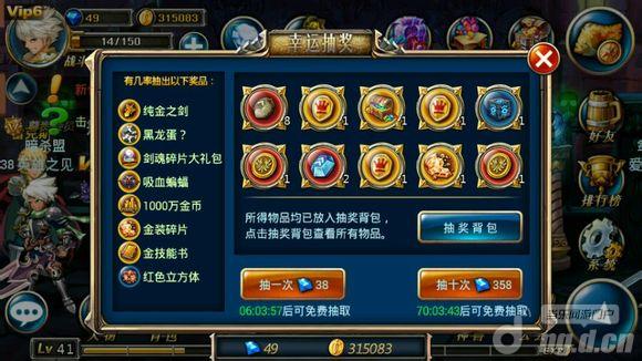 幸运抽奖抽1次将花费38钻石,10连则花费358钻石。