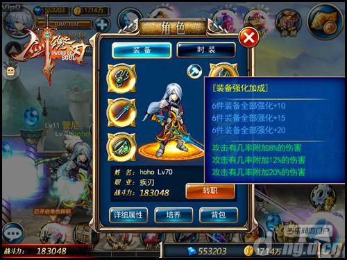 装备强化:新增强化套装属性,6件装备强化等级全部达到10、15、20时,就会激活附加属性。可镶嵌宝石增加5种新属性:生命、物攻、物防、绝攻、绝防。