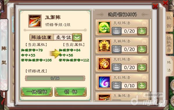 当我们获得阵法之后,便可以通过“阵法系统”进行激活使用,会为人物角色以及符印带来提升属性的能力。不过刚刚激活的阵法所带来的提升并不理想,此时我们便可通过类似“养成”的方式来不断提高阵法效果。