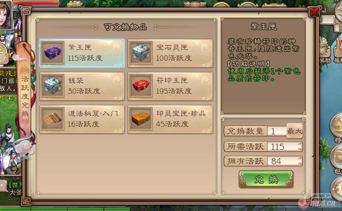 4、活跃度商城。攒到一定活跃度就可以去换符印玉匣,或者用参加科举之后攒到的文采值,到长安城找到文兴也能换符印匣。