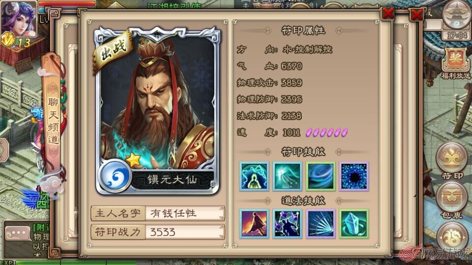 接下来看看二号宝宝镇元大仙,镇元目前可是最好的控制宝宝,既不完全统计(在我单挑的战斗中)每次都能混上对面俩个怪三回合