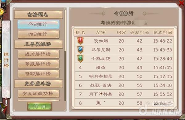 千万不要以为小编在拿荣誉开玩笑哦,据说三界高考的监考BOSS们经过多次开会研究,还将对科举中成绩优秀的玩家进行表彰,在天下公布金榜题名榜展示。榜单分“昨日排行榜”和“今日排行榜”。那么,问题来了?怎样才能上榜呢?其实不难,每天至少答对15题将有资格进入当日排行榜,根据答对题数和耗时排名,次日0点结算,答错题目会增加耗时,每日排名前50的玩家将在次日收到额外奖励邮件。另外再答题过程中能够连续答对题目,还有机会获得额外的道具奖励哦。