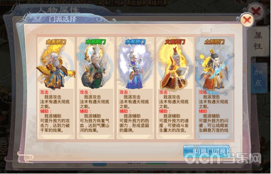 比如:玩家进入游戏后,选择加入的是金系,后来想要切换到土系或其他门派,都是可以的,而且也没有切换次数限制。