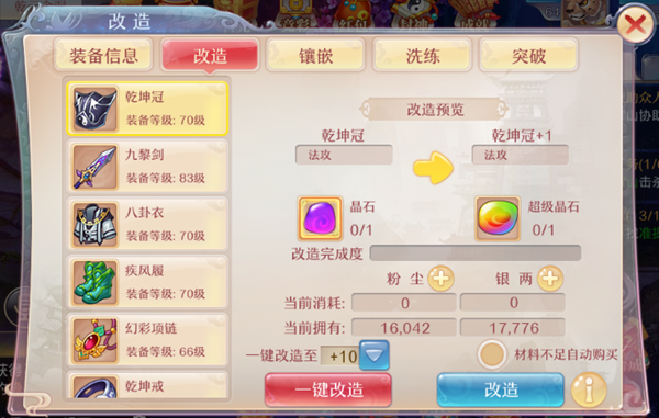 装备改造可以大幅提升装备属性的功能,当前改造等级最高为10级。