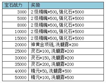 新玩家进入新服后14天内,经脉,宝石达到指定要求即可领取丰厚奖励!