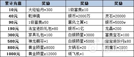 新服开服前7天,累计充值达到指定额度可以领取丰厚的珍稀道具奖励!