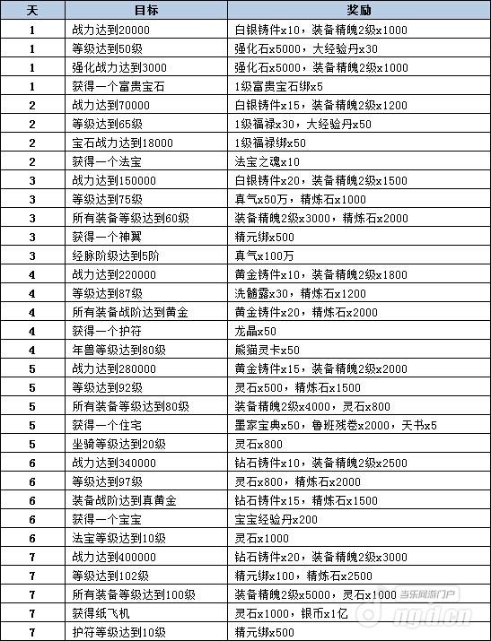 【活动规则】新服开启前7天,游戏内角色达到指定要求,便可领取丰富的奖励,助你战力飙升!