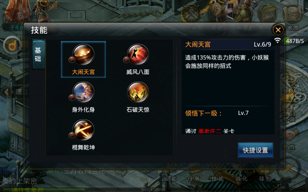 《神魔OL》技能不是根据角色等级升级,而是根据通关副本后提升的。当然后技能升级后,副本通过也是非常快速的。