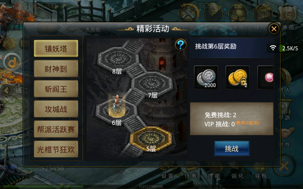 镇妖塔以及世界BOSs等各项各种活动尽可能的参加。