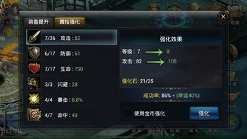 强化需要用到强化石,镇妖塔、副本过关抽奖都有机会获得,不过量少,所以推荐买一个特价VIP等级礼包,性价比非常高。当然也可以使用金币强化,不想直接充钱的可以参加论坛活动,我背包里的绑金基本都是通过活动和签到奖励补充的。