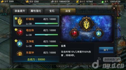 五大法宝功能各异,可以根据自身角色的需求自由组合其中三个,怎样组合可以使你法力无边呢?慢慢琢磨吧!