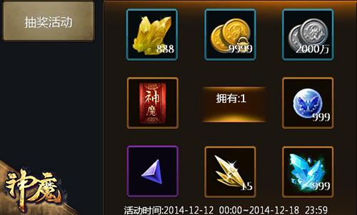 《神魔》玩家年底大回馈活动正式启动。游戏内推出大型转盘活动,每天登陆即可参加抽奖,有机会获得9999金币、神魔红包、珍稀宝石等大礼。英雄们通过参与游戏活动赢取积分,更可兑换神魔大礼包,奖品包括总价值约10万元的京东购物卡和大量珍稀道具。英雄们,可要好好把握这个机会,每天登陆,领取巨额红包晒年终奖啦!