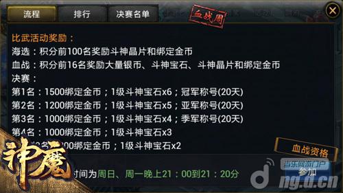 作为5月战斗季推出的助兴活动,这次《神魔》比武活动的时间并不算长。但是正因为如此,绑定金币和斗神晶片的奖励才显得弥足珍贵。在这种时候还犹豫什么,打起精神,向一大波奖励疯狂逼近吧!