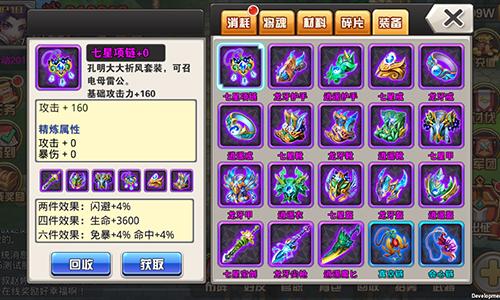 游戏内的宝物分为戒指和项链,对于武将和主角具有一定的属性加成,因此选择好合适的宝物饰品是十分重要的。对于初来乍到的游戏玩家来说,15级才能 开启的明争暗抢系统是获得宝物的直接来源。宝物分为蓝色和紫色以上品质宝物,蓝色宝物可以默认系统显示,而紫色及以上的宝物则需要在获得一个碎片后才能在 夺宝列表中开启此项功能。功能开启后,玩家可以通过竞技场,夺宝翻牌以及购买集市中的宝物宝箱获得。