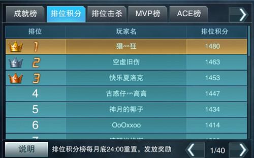 以玩家的排位积分高低进行排名,排位积分榜每月底24:00重置并发放奖励,前1200名都可领取到对应的奖励,第一名可获得水晶AWP。