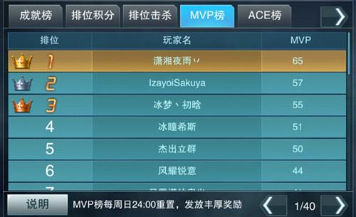 以玩家在所有模式的战斗中获得的MVP数高低进行排名,每周日24:00将MVP榜每周奖励发至邮箱,并清零本周榜单数据。榜首玩家的奖励是水晶M4A1。