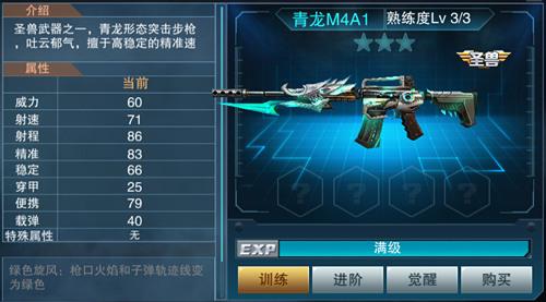 四大神兽之一的青龙之魂缠绕枪体,发出蓝绿荧光,作为圣兽枪的青龙-M4A1,霸气外观足以震慑全场。精准性、弹道稳、射程远这些属性基本都优化了一遍。虽说青龙- M4A1整体霸气强悍,但也不是没有天敌的。
