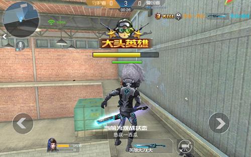 在大头英雄模式中,加入了独特的加血玩法,增加了新手玩家的可玩性,他们可以选择躲在角落替技术较好的队友补血。当然配合也是很重要的,大头王的 名额有限,大头王变成英雄之后仅可以使用近战武器,近战武器对新手来说比较困难,因为队伍成员要相互配合,看谁变成英雄比较合适。