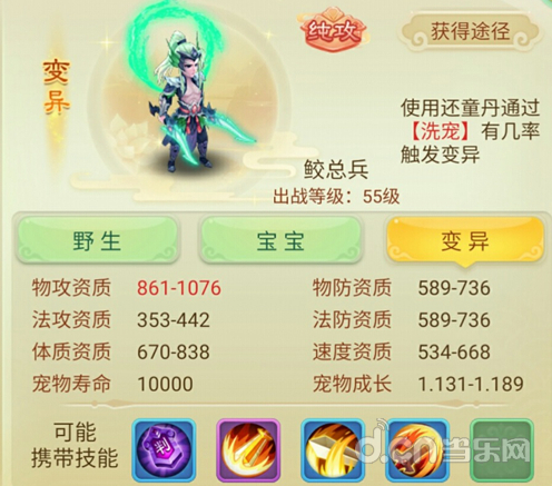 建议大家洗出变异,变异也不是很难洗。多洗几次就好了。而且变异比起普通宝宝,资质和成长都要高很多,就算后期有了新宝宝,也可以挂珍品阁卖掉哦。