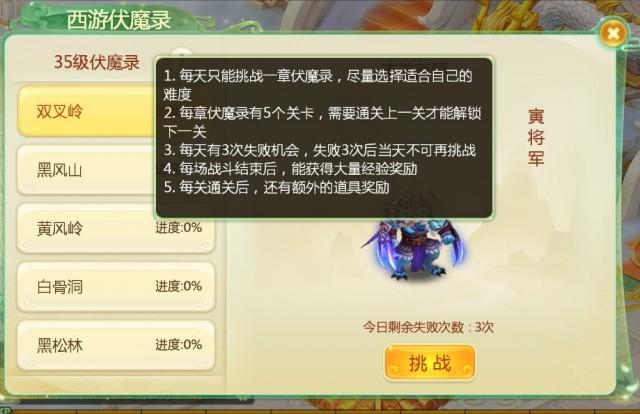 3)每天有3次失败机会,失败3次后当天不可再挑战