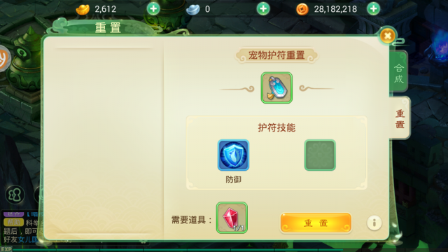 两个相同类型且相同等级的装备可以合成全新同等级的宠物装备:装备重置属性,护符则重置护符技能,但不改变技能数量(重置护符需要四级赤炼晶)。