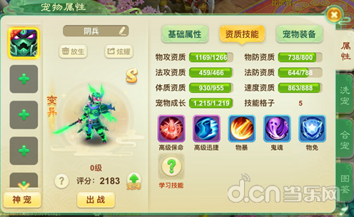 天师和蛊师可以培养一只物攻宠物,在这里推荐大家阴兵。阴兵最好带个神佑技能哦,不然没生存会影响法师持续输出(法师普遍速度慢),也是为了法术和物理的互相搭配。
