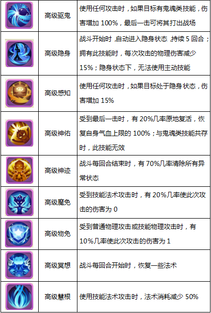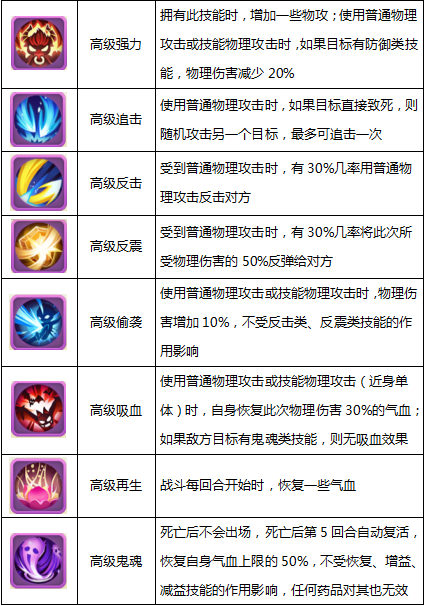 宠物技能共分为3类,分别是低级技能,高级技能和主动技能。