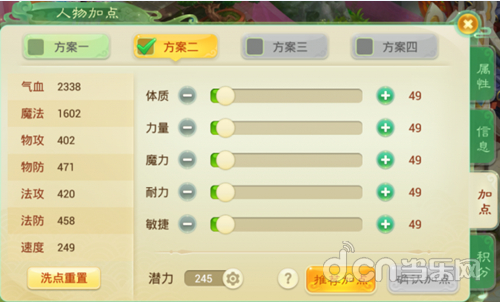 力量 增加力量点数可提高角色物攻,还可提高些许法防和速度