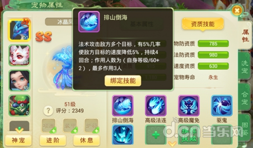3)特殊技能:宠物特殊技能不同于初级和高级技能,如单体物理攻击法术“善恶有报”等。