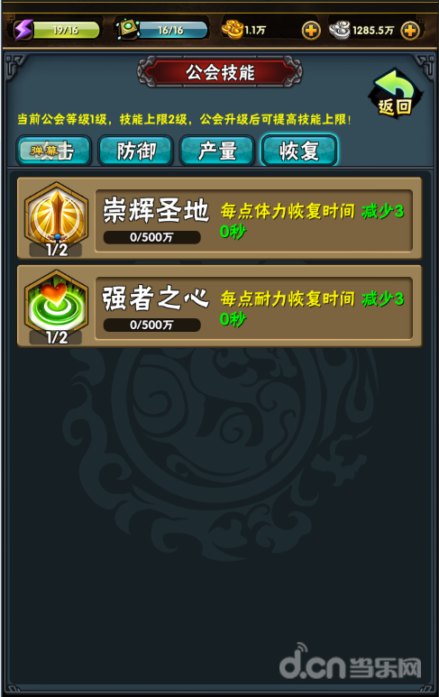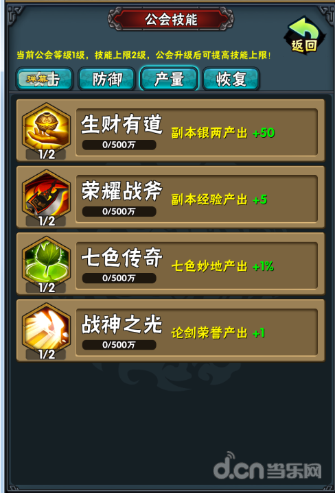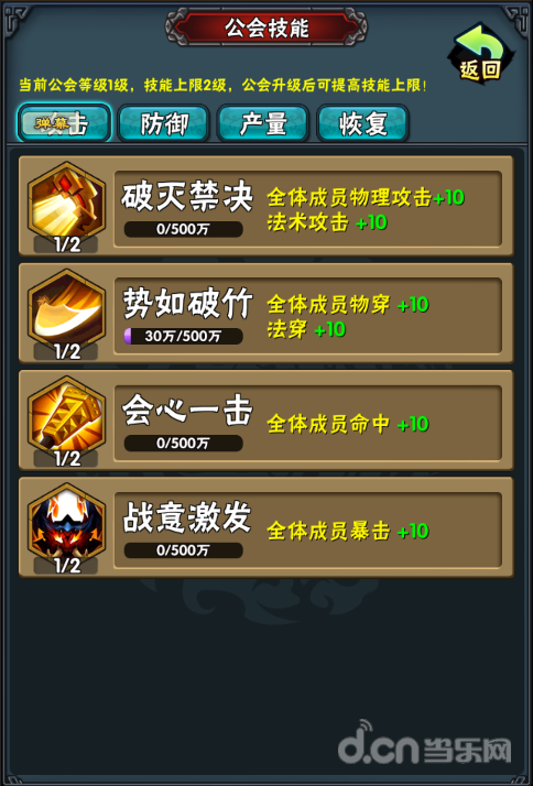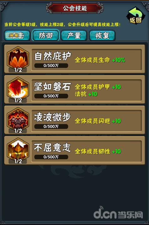 升级公会技能对全体公会成员有巨大加成,如下图所示。