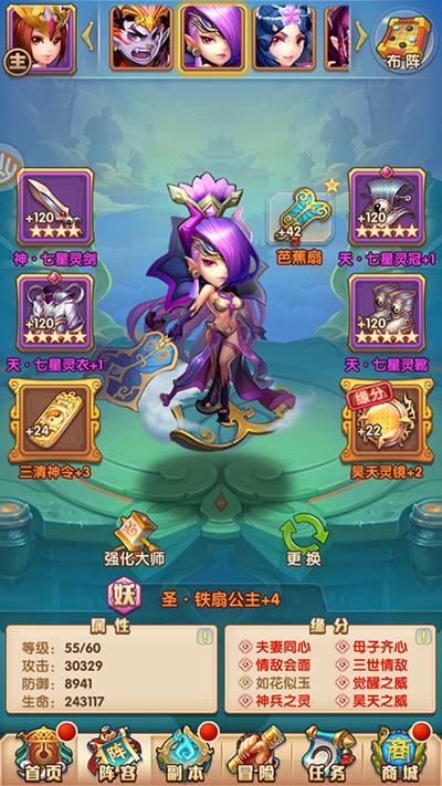 在《少年西游记》的【阵容】界面中可以看到,神将们除了装备有一身华丽的武器防具外,还有两个宝物栏分别可装备攻击和防御宝物。与装备一样,宝物的品质分蓝色、紫色、橙色等档次,目前最优秀的宝物为橙色品质。