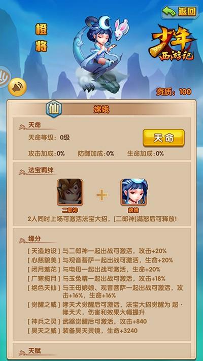既然八戒对嫦娥的缘分被称作是【一厢情愿】,也就代表这段感情注定是悲剧。从嫦娥的缘分表里可以看到,完全没有八戒的位子,连嫦娥的法宝羁绊对象都是有着“天庭第一高富帅”之称的二郎神。更大的暴击还在这,嫦娥的第一条缘分,与二郎神一起出战时自身攻击+20%,且被命名为【天造地设】……(你们有考虑过后羿的感受嘛!?)